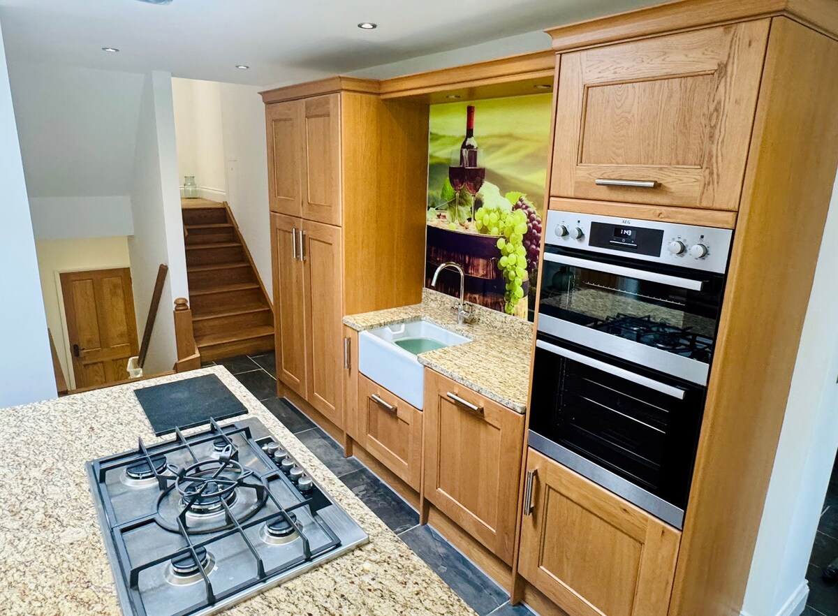 At the heart of the home is a spacious, fully equipped open-plan kitchen with modern appliances and plenty of workspace. It’s perfect for cooking up delicious meals together, with a large dining table nearby where everyone can gather to enjoy homemade dinners and celebrate special moments.